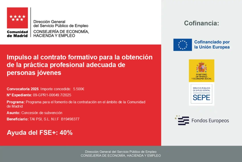 MIYU recibe una subvención del Programa de Fomento de la Contratación de la Comunidad de Madrid para impulsar el talento joven en el sector tecnológico.